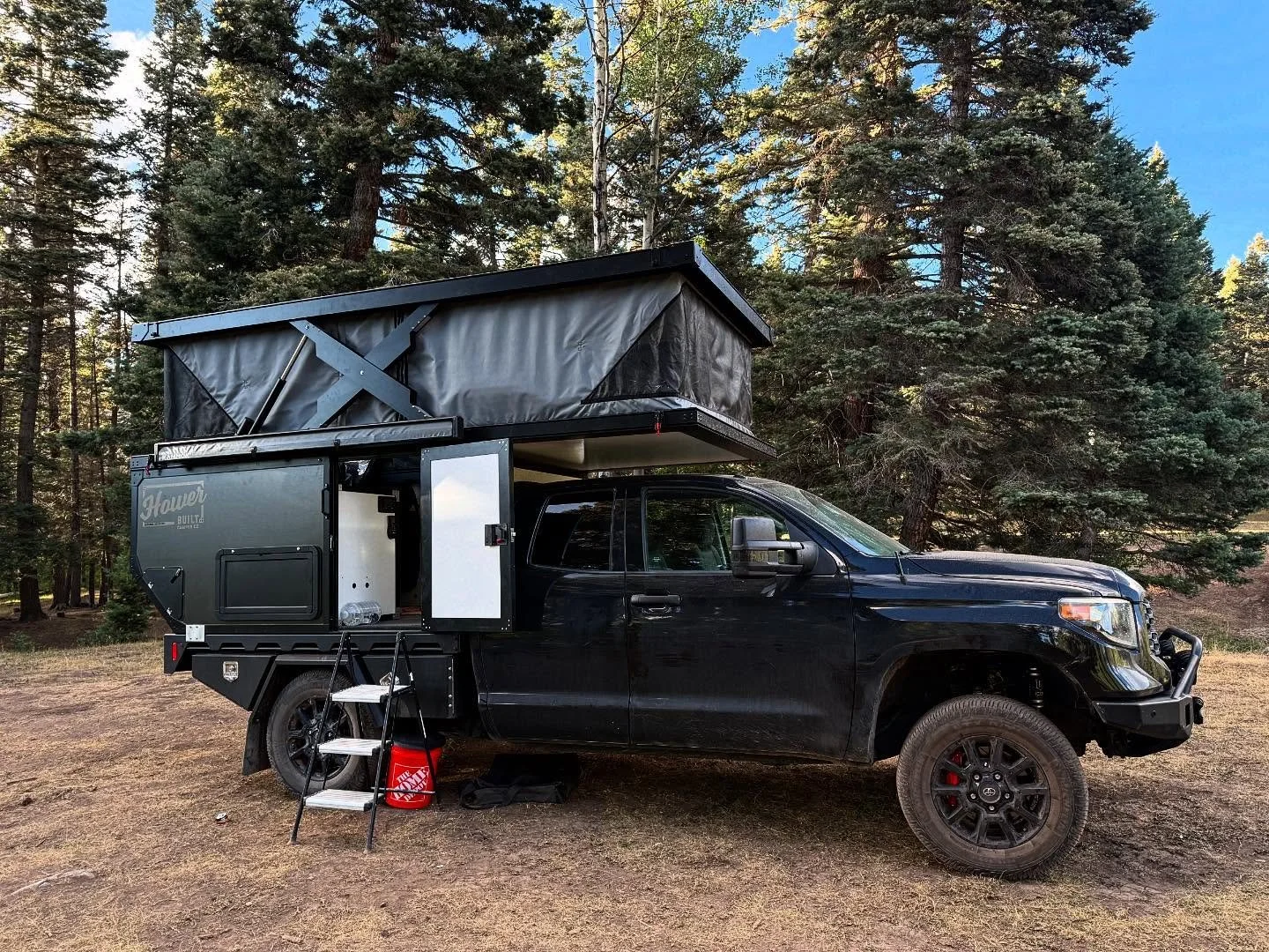 HowerBuilt Campers are Fully-Electric truckbed campers that bring Indoor Spaces to Wild Places. With our innovative 300-lb roof lifting power, patent-pending pop-top assembly, built-in REDARC/Expion360 power system, and four-season-ready insulation walls and canvas, we bring truck campers to a whole new level.